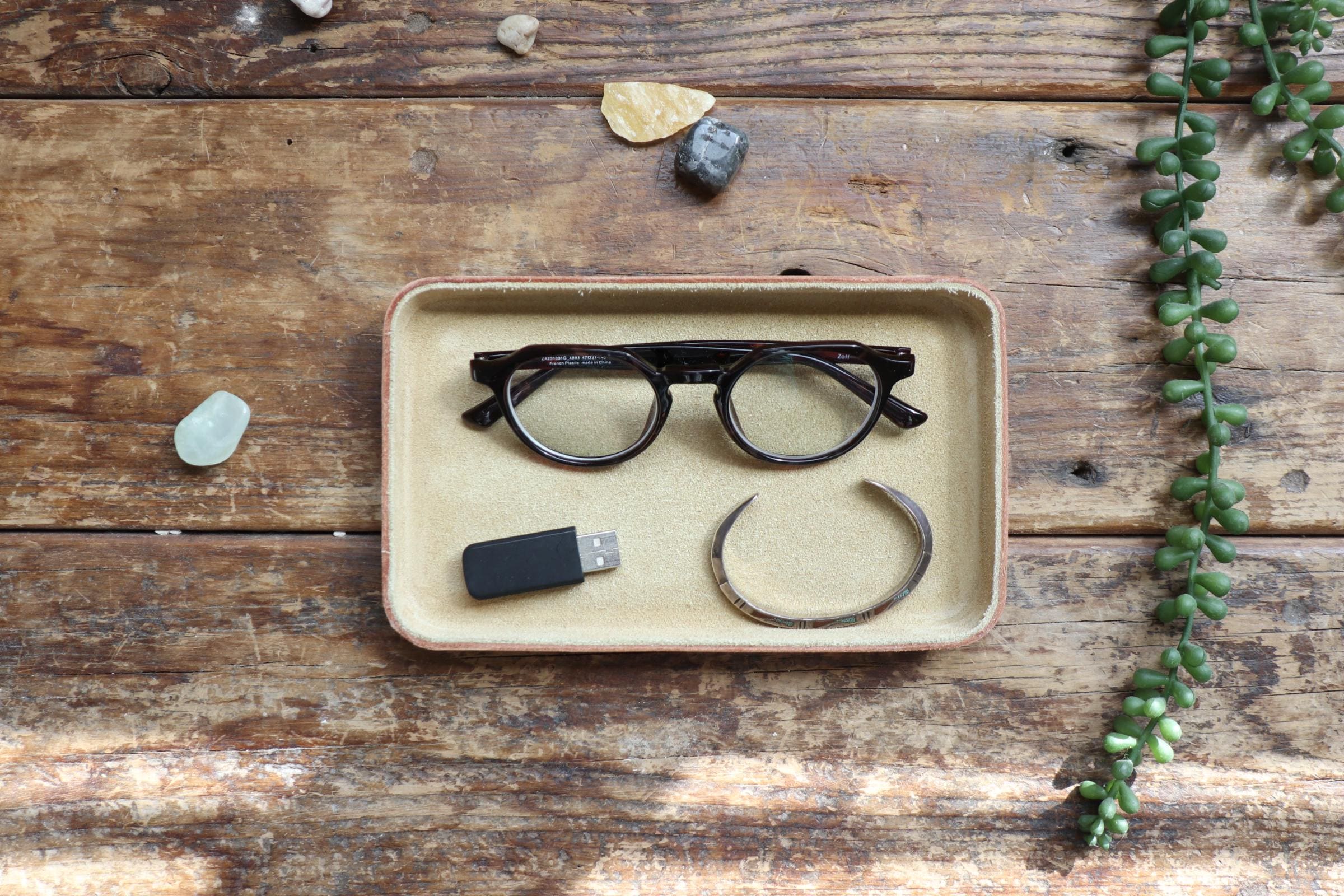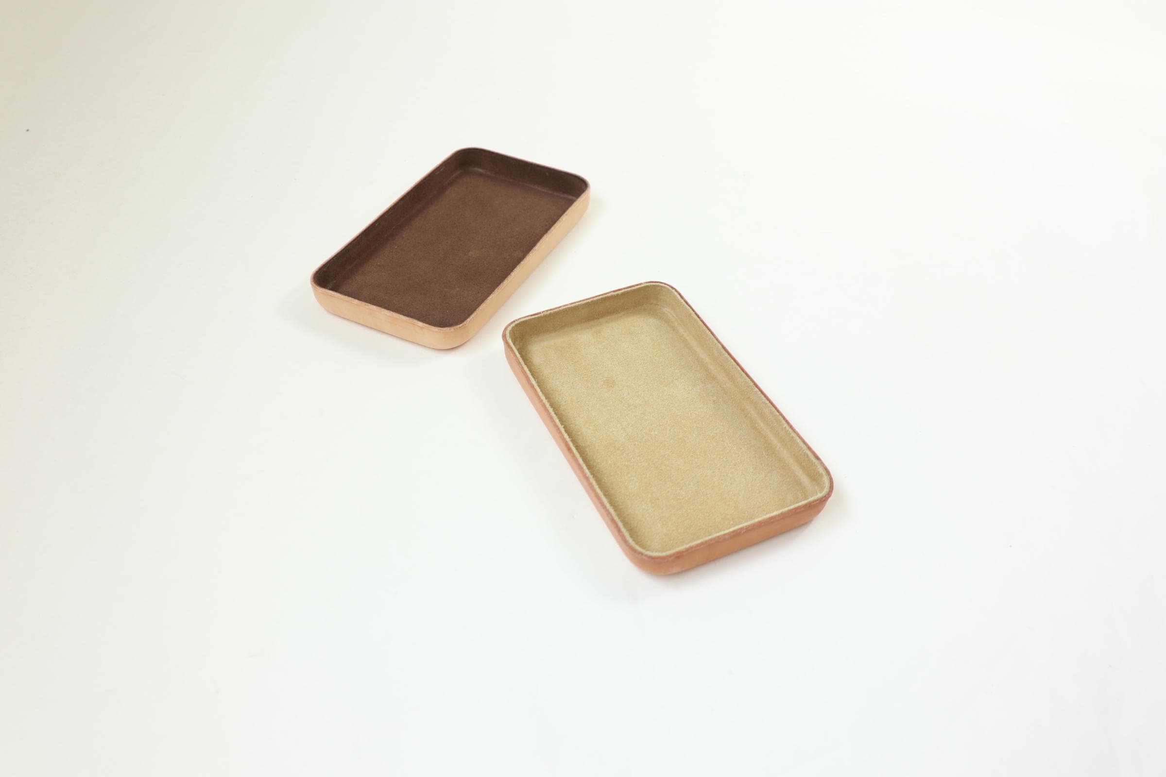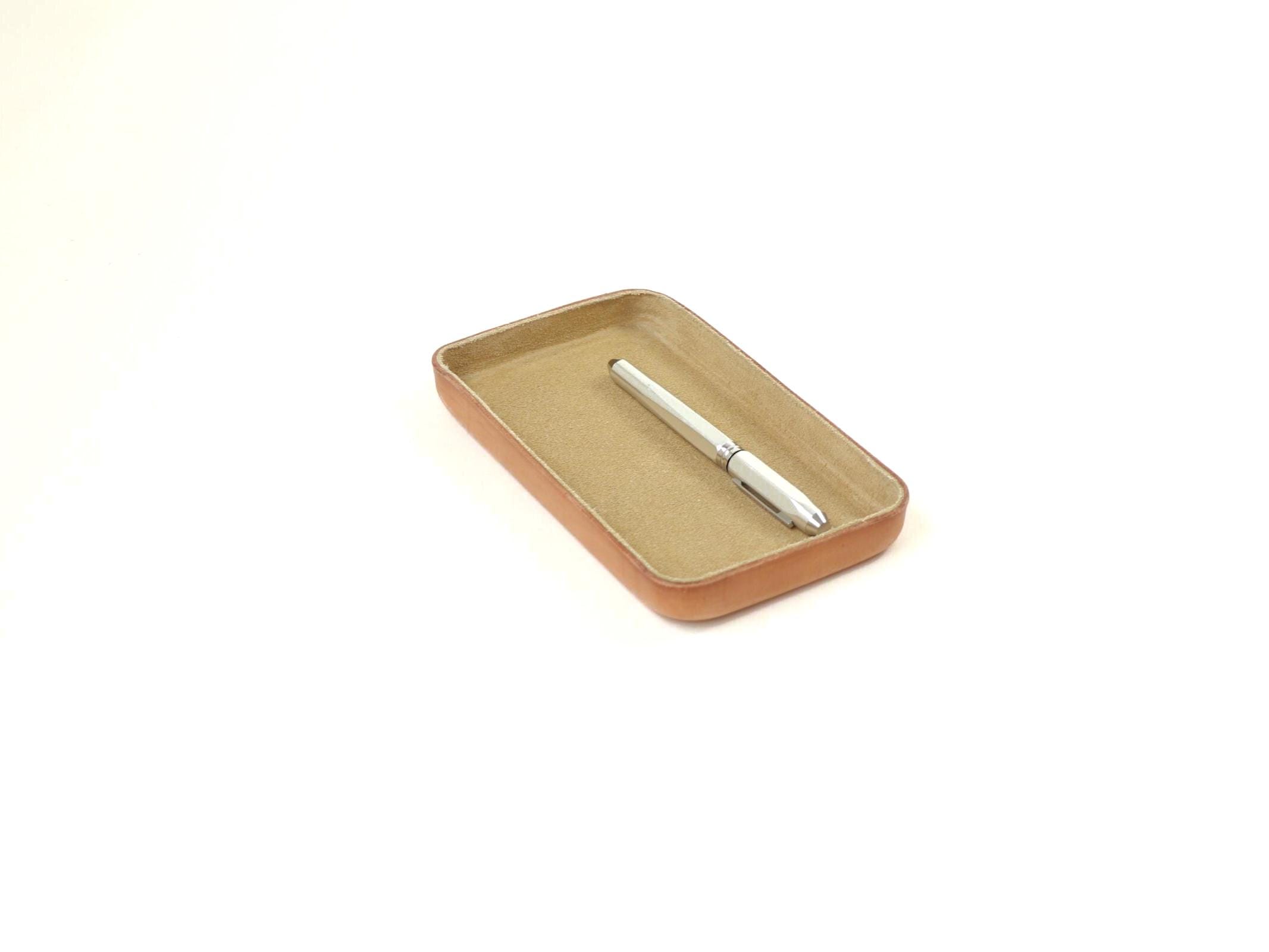 ・ This tray is made in Los Angeles from vegetable tanned leather and smooth cowhide Toast Brown suede leather, then molded, finished by hand.