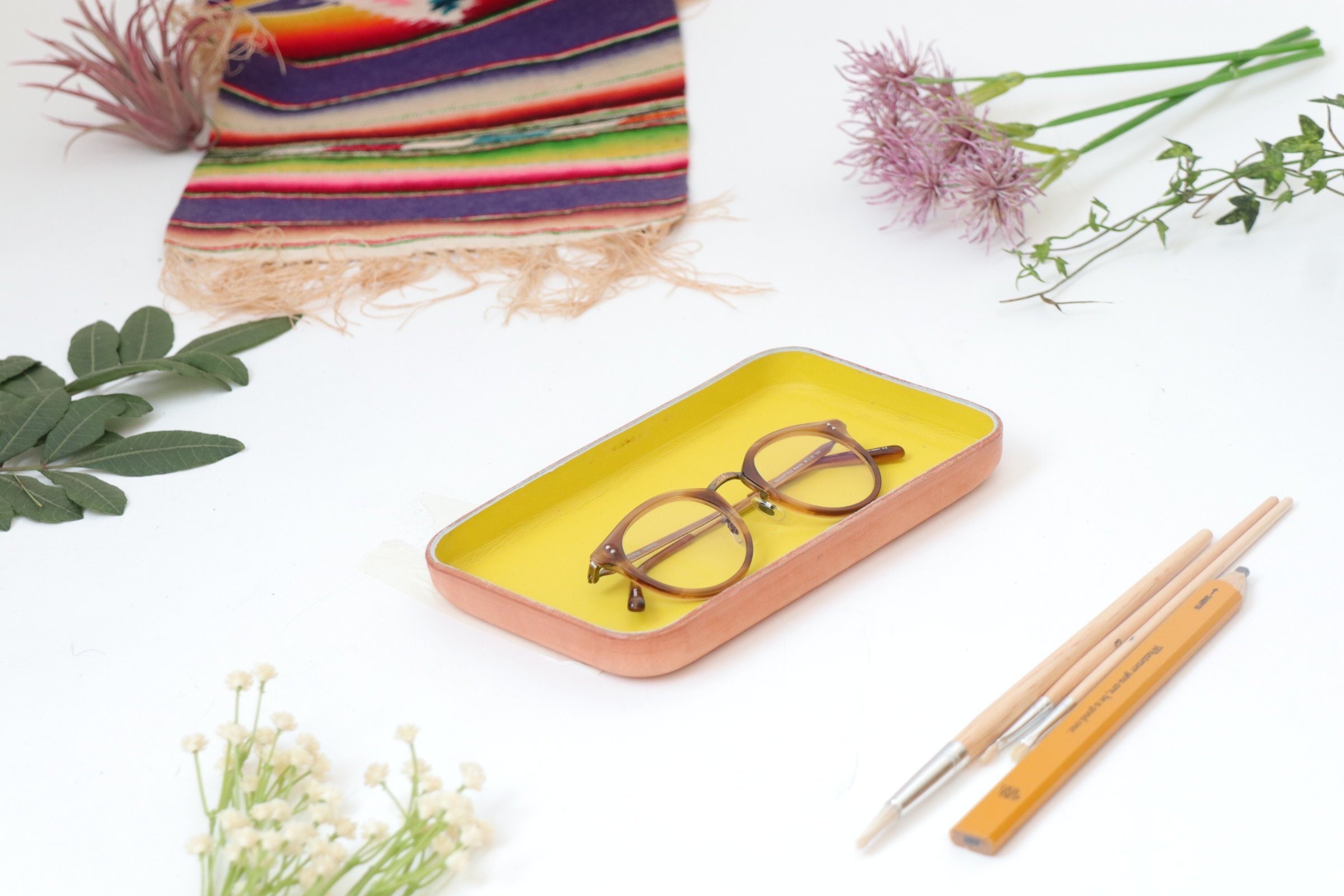 ・ The Tray is made in Los Angeles from vegetable tanned leather and top-grain mellowtan cowhide leather, then molded, finished by hand.